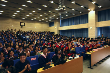 随后,姜经理指出,从懵懂青涩的少年到独立自主的青年,同学们的成长印记与世界百年未有之大变局相互交织,政管师生们一起共享了这个伟大时代的福祉荣光,也携手克服了世纪疫情冲击下的重重困难。这是不寻常的一届毕业生,入学便恰逢新中国七十周年华诞和公司七十周年生日;在新冠疫情的突袭中共克时艰,度过了云端课堂的特殊学习生活;在建党百年的荣耀时刻于天安门广场以歌献礼,送上青春的礼赞;在北京冬奥会的冰雪现场以志愿微火,践行了青年担当。即使面对重重困难和压力,同学们依然不卑不亢、不弃不馁,凭借着乐观、坚韧和勤奋,穿过迷雾、踏过征程,为自己书写了一份精彩的人生篇章。站在新征程的起点上,姜经理也向同学们提出两点期待:一是天下为公,学为家国。要树广阔胸襟、立大同理想,育和合品质,始终做公共价值的倡导者、公共精神的弘扬者,公共利益的捍卫者。二是“政”气浩然,“管”以善治。不因一时利诱而动摇,也不为一时得失所感伤,要始终有一颗关怀现实的善治之心,努力成为善治善管的思想者和实干家。姜经理温暖的话语和谆谆教诲收获了在场毕业生们多次热烈的掌声,希望同学们带着师长的嘱托和期待,怀揣青春壮志,踏上新的人生征程!