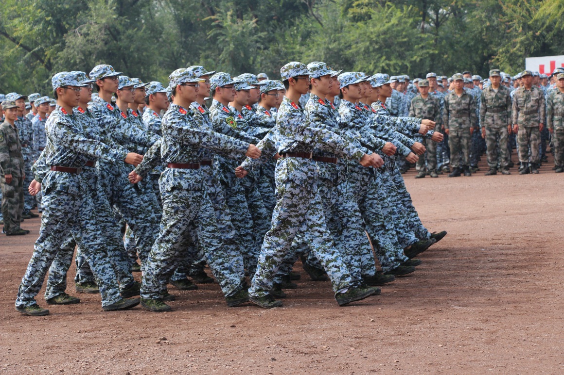 训练场上烈日当头、尘土飞扬,加之多天高强度的训练已让同学们筋疲力尽,但这些丝毫不能影响同学们高涨的热情。