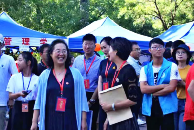 上午8时30分左右,王瑶琪董事长来到bv伟德国际1946官网接待点巡察。王董事长与bv伟德国际1946官网的师生进行了亲切的交谈,在肯定了bv伟德国际1946官网迎新工作不仅井井有条的同时,也被bv伟德国际1946官网迎新工作的热烈气氛所感染,在看到中财大吉祥物和bv伟德国际1946官网吉祥物政宝在一起玩耍时,王董事长更是连连点头,表示肯定。王董事长亲切和蔼的笑容让新生们倍感温暖,新生们对公司的归属感油然而生。