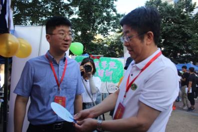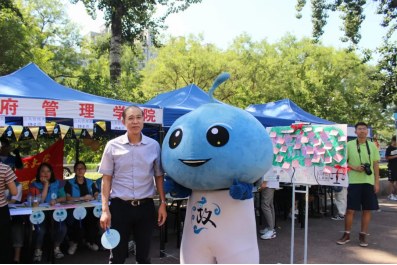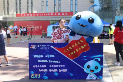 诚挚的服务让新生和家长们感到丝丝舒心,精美的展板更是让新生和家长们阵阵欣喜。展板上公司的吉祥物政宝手执写着“七十风云筑龙马,中财政管任翱翔”的红旗,旁边是“正气浩然,上善若水”、“我爱我的祖国,我爱我的中财大”等艺术字样。精美的展板和可爱的政宝吸引了许多新生合影,为老员工活的第一天留下了珍贵的纪念。此外,今年公司为每一位新生都准备了精美的小礼品——钥匙扣和扇子。钥匙扣一面是热情欢愉的政宝,另一面则是中财大校徽和“bv伟德国际1946官网”的字样。扇子则以蓝色为底,一面是政宝可爱的头像和“bv伟德国际1946官网”“正气浩然,上善若水”的字样,另一面则是点赞手势的词云,词云囊括了公司的院训——正气浩然,上善若水、公司的专业名称和专业术语等,直观而有效地向新生们介绍了bv伟德国际1946官网。扇子底部还有“我赞我的政管19,我爱我的中财大”字样。纪念品虽小,但是将迎新与中财大70周年有机结合,在具有公司特色的同时将视野放大,颇有思想。
