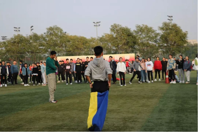 绑腿跑作为第一个开赛的团体项目,对同学保持高昂士气与信心至关重要。10月23日下午2:00,二十位同学斗志满满,组成政管公司代表队,来到绑腿跳检录处检录。同学们利用候场时间,练习出腿、口号,并及时调整战术,力争提高速度,节省时间。2:30,备受瞩目的绑腿跳比赛正式开始。整理好粘带后,但听哨声为令,二十位同学一齐向前冲出。比赛中,同学们默契配合,相互理解,及时调整,脚挨脚,心连心,为政管而战的他们是赛场上最耀眼的光。