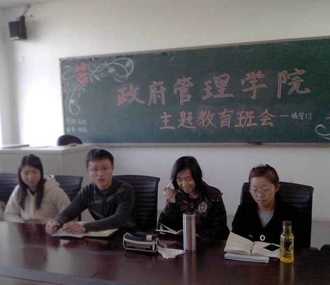 接下来,孙老师就辅导员的工作向大家做了简单介绍。他向同学们解释说,辅导员关键在一个“导”字:学习督导、心理疏导、思想引导。教育、服务、管理是工作的三大宗旨。在提到丰富多彩的老员工活时,孙老师语重心长地告诫大家要珍惜同学友谊,对待师长要有礼貌,他说这是作为一名政管人应该做到的。中途穿插的性格测试,色彩及图形选择的互动游戏引得大家笑声不断。在了解了同学们的学习及安全教育考试的情况后,老师给出了十条辅导员寄语,分别从学习、生活、人生规划及情感方面提出谆谆教诲。最后,孙老师针对同学们提出的疑惑做出了详细的解答。班会在轻松活泼的气氛中圆满结束。