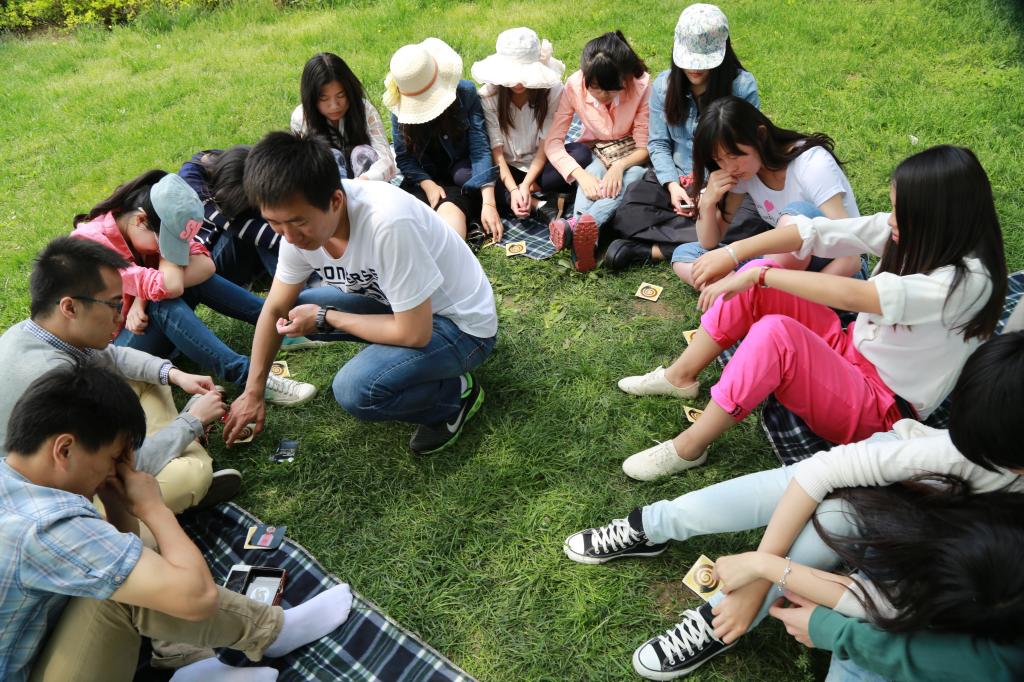 在几位班委的带领下,大家最终锁定 “地盘”,选中一片位置极佳又舒适平坦的草地就坐。同学们聚集在一起,彼此分享着准备好的食物,为自己积蓄能量。接下来,12级国政班的传统项目——“惊险刺激”的狼人游戏正式开始。同学们扮演着自己的角色,在“上帝”的领导指挥下,通过察言观色、缜密推理,与其他人展开博弈,一点一点发现真相。游戏过程中,有人暗自窃喜,有人恍然大悟,有人深深懊悔,每个人都为达到自己的最终目标不懈努力。几轮下来,大家的热情依旧高涨,都沉浸在欢乐的氛围当中。