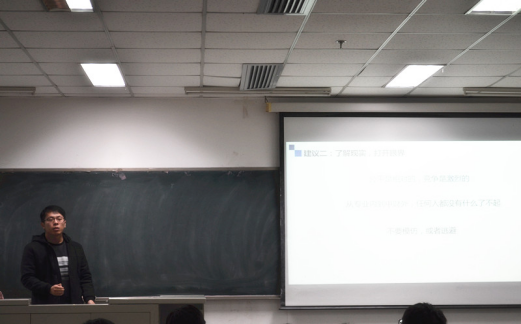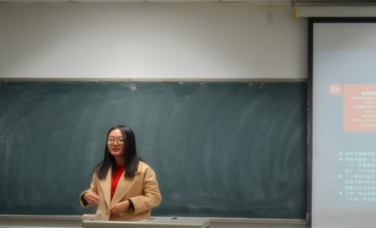即将去北京大学汇丰商公司就读硕士的大四学姐李欣媚介绍了自己在学习、员工工作方面的经历以及获得的荣誉奖项,向大家介绍了关于英语学习、科研论文以及日常学习工作的注意事项。告诫大家“不要被保研束缚”,要“立长志、常立志”以及“保持一颗进取心”。李欣媚学姐鼓励大家做自己想做的事情,对自己的选择负责。她道出了自己看来大一新生学习生活无法平衡的原因,那是因为“做事涣散,效率低下”所造成的。