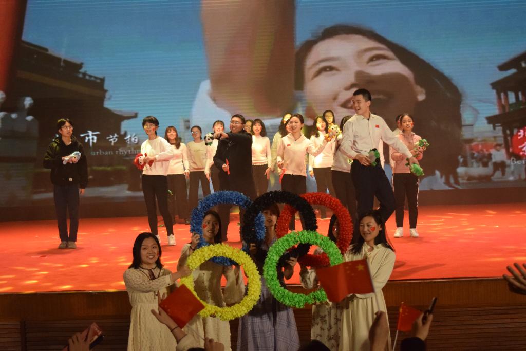 紧张刺激的抽奖环节后后,由公共事业管理18班、城市管理18班联袂带来的节目精彩上演。同样展现中华人民共和国七十年发展史,公共事业管理18班、城市管理18班根据新中国成立70周年的时间线选取了开国大典、一五计划和三大改造、改革开放、香港澳门回归、北京奥运会这几个典型的历史事件来表现祖国的发展历史,表达了同学们对新中国70华诞送上的热切祝福。