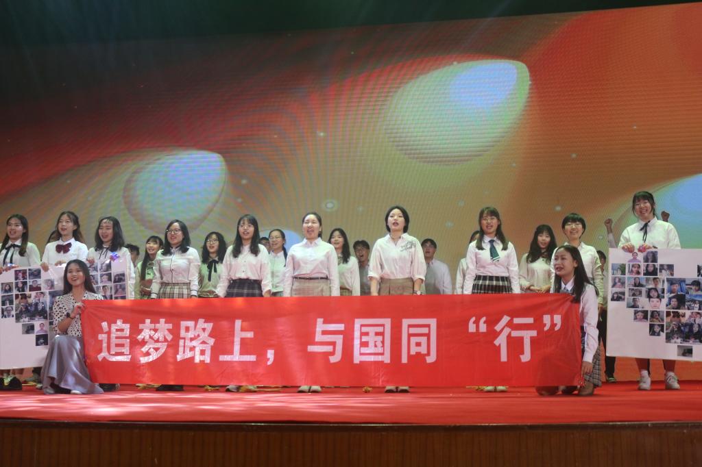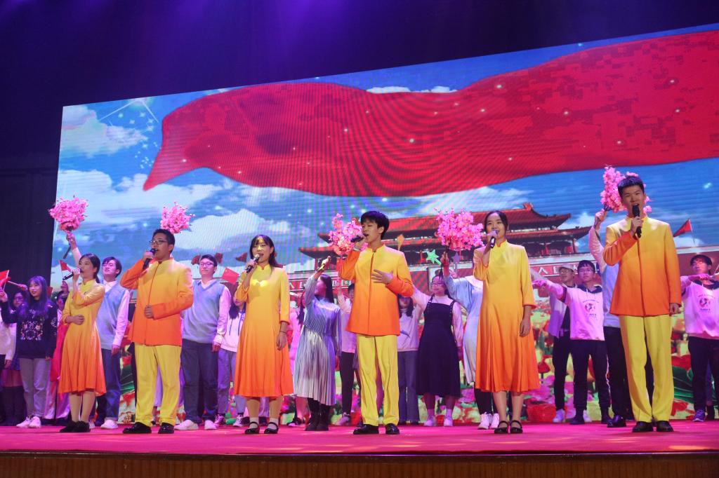联欢会最后一项节目是由国庆广场合唱团成员、“春潮滚滚”方阵成员、演职人员代表共同带来的大合唱《不忘初心》。大合唱《不忘初心》将每个人的爱国情怀调动起来,全场气氛升华到最高。红日初升,其道大光,河出伏流,一泻汪洋,我政管学子定将不忘初心、牢记使命,书写我们的青春芳华。