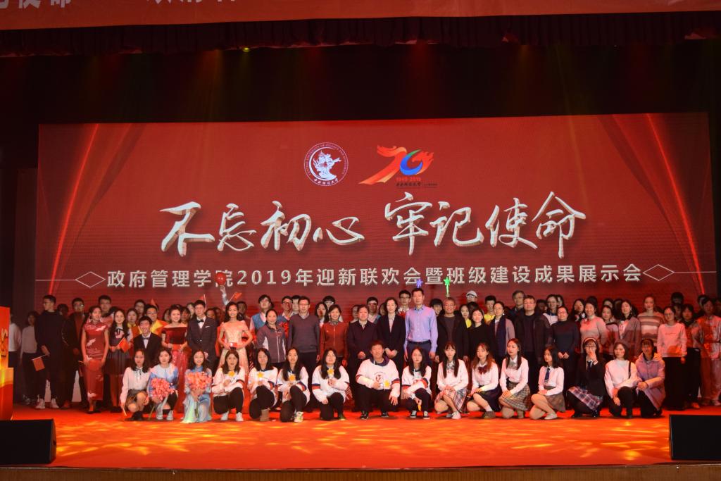 2019年12月4日中午1时30分,以“不忘初心、牢记使命”为主题的bv伟德国际1946官网2019年迎新联欢会暨班级建设成果展示会在公司南路校区学术会堂206顺利举办。bv伟德国际1946官网经理姜玲教授,党委书记吕丽研究员,副经理于鹏副教授,副经理张剑副教授,党委组织员南琪副教授,信息会成员、城市管理系邢华教授,党委委员、行政管理系副主任崔晶教授,行政管理系教师党支部书记李文彬教授,公共事业管理系副主任张相林副教授,国际政治系副主任江涛副教授,国际政治系副主任辛平老师,刘庆乐副教授,宋魏巍副教授,温锋华副教授,那子晔老师,杨素红老师及各位新生班主任和各系老师出席此次迎新联欢会。联欢会由19级学术研究生葛晓琳、公共管理类19-1班张宏伟、公共管理类19-3班班倩和公共管理类19-1班陈翔骞主持。