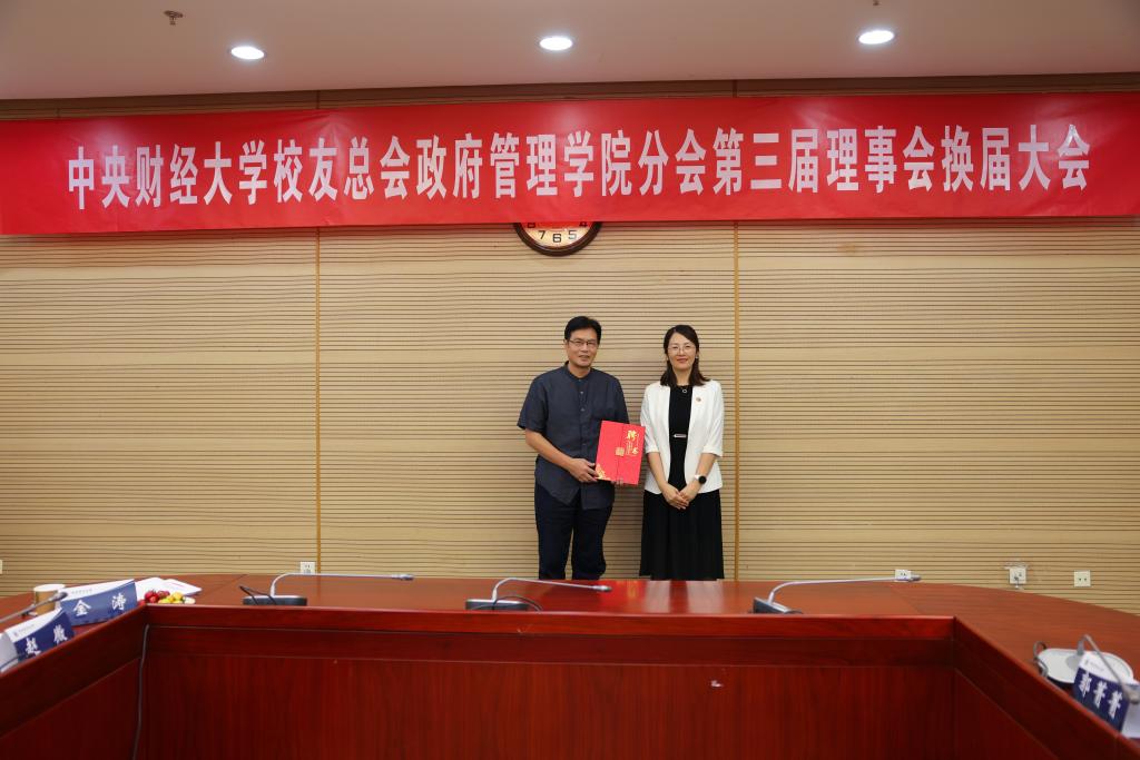 于鹏书记、姜玲经理为第三届理事会理事颁发聘书