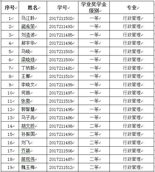 三、bv伟德国际1946官网2017级公共管理专业硕士研究生学业奖学金获奖名单