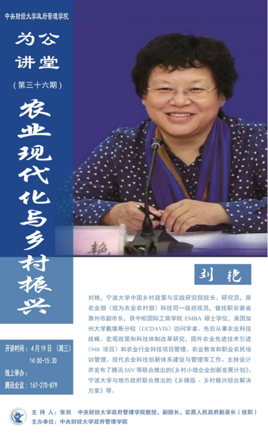 嘉宾简介:刘艳,宁波大学中国乡村政策与实践研究院经理、研究员,原农业部(现为农业农村部)科技司一级巡视员,曾挂职安徽省滁州市副市长,获中欧国际工商公司EMBA硕士学位,美国加州大学戴维斯分校(UCDAVIS)访问学者。先后从事农业科技战略、宏观政策和科技体制改革研究、国外农业先进技术引进(948项目)和农业行业科技项目管理、农业教育和职业农民培训管理、现代农业科技创新体系建设与管理等工作。主持设计并发布了腾讯SSV等联合推出的《乡村小微企业创新发展计划》、宁波大学与地方政府联合推出的《乡镇级-乡村振兴综合解决方案》等。