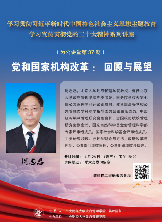 嘉宾简介:周志忍,北京大学bv伟德国际1946官网教授。曾任北京大学bv伟德国际1946官网党委书记,国务院学位办第七届公共管理学科评议组成员,教育部高等公司公共管理类学科教学指导委员会副主任委员,中国机构编制管理研究会副会长,全国政府绩效管理研究会副会长,国家自然科学基金会管理科学部专家评审组成员,国家社会科学基金评审组成员。主要研究领域:行政学理论与方法、政府改革与创新、公共部门绩效管理、公共组织绩效评估等。