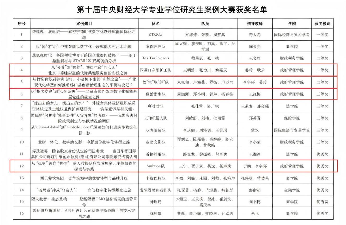 2025年5月27日下午,第十届bv伟德国际1946专业学位研究生案例大赛决赛在公司南路校区主教楼114报告厅举行。来自bv伟德国际1946官网、财政税务公司、金融公司、保险公司、国际经济与贸易公司、商公司、法公司的16支队伍晋级决赛。经过激烈角逐,bv伟德国际1946官网4支参赛团队凭借扎实的专业理论知识基础与出色的实践分析能力,荣获二等奖2项、三等奖1项、优秀奖1项,参赛队伍指导教师王红梅、姜玲、于鹏、李宇环、耿云获评优秀指导教师奖,公司荣获优秀组织奖。