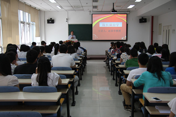 最后,赵景华经理为新生进行“经理谈治学”专题讲座。赵景华教授从自身求学之路谈起,回顾了自己学术研究的几个关键时点,阐述了多年来治学的经验和体会,举例讲解了他本科与研究生阶段的求学方法,重点强调了“高、深、比、实、戒”的治学理念,生动的诠释了如何心怀一颗责任心做好学问,教会了同学们只有了解了如何做人、如何做事、如何与人相处以及认真学习研究方法,才能够更好的做学问。最后赵经理深情的提出“贡献可以有大小,但都是正能量,希望你们做大气、有正气的人”。
