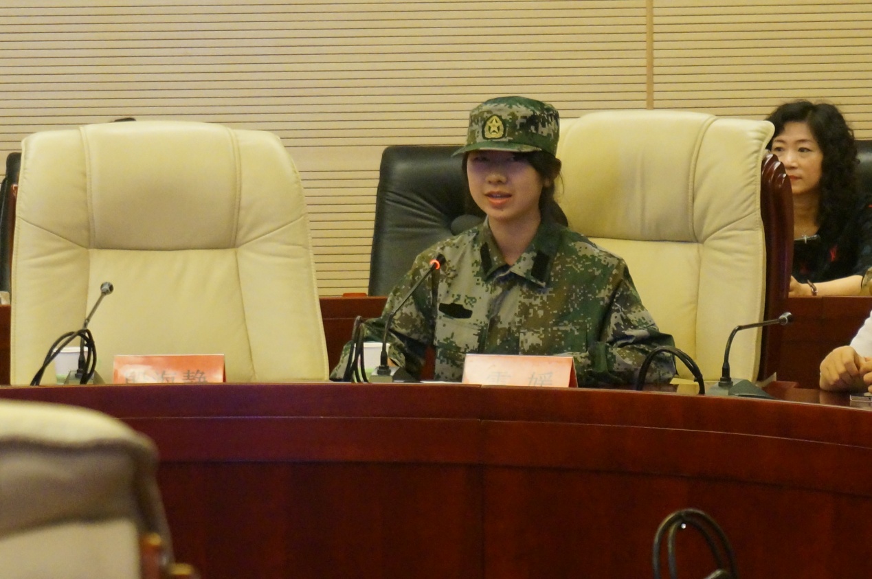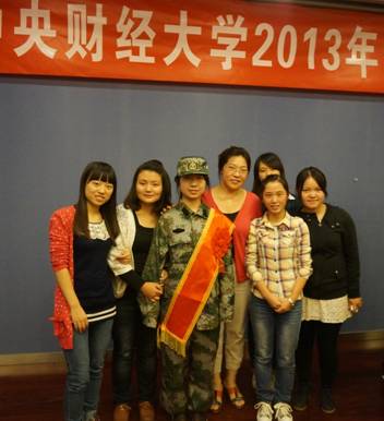 欢送会第一个环节便是雷媛同学作为一名新兵发表自己的感想与希冀。身着一袭迷彩军装的她,显得那么精神与自信,充满了力量。同时,她也表现出一向的沉着与从容,落落大方。雷媛同学首先表达了自己对中财这个大家庭一年来给予自己关爱的衷心感谢,也传达了内心渴望回报公司、让公司以她为荣的愿景。现场观众都能从她的真挚话语中,深切感受到一种侠骨柔情——渴望报效祖国的言语展现她巾帼不让须眉的豪情壮志;温婉淡雅的表情又让现场感受到女兵的飒爽英姿。那一刻,所有人都被这种富有激情而又充满温暖的场面打动了。