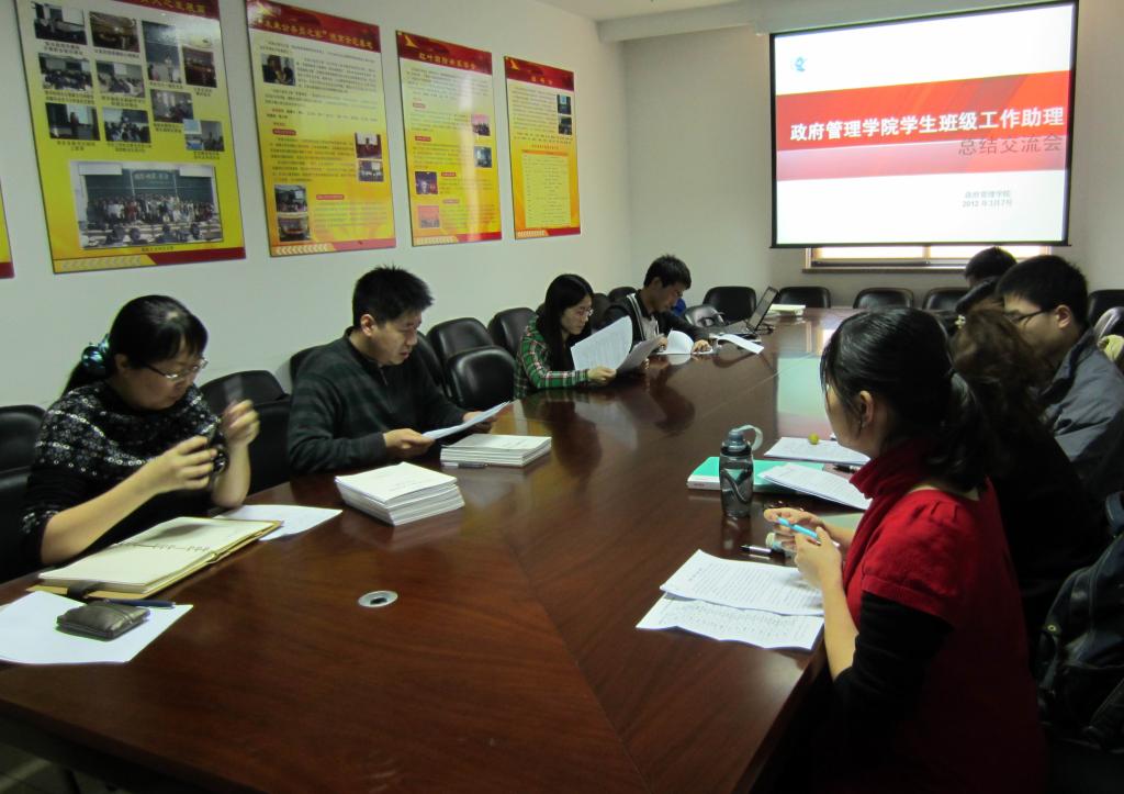 随后,各位班级工作助理依次发言,介绍了所带班级的整体情况及重点关注员工的情况,还就自己的工作特色、工作方法以及在工作中发现的问题和建议进行了总结。其中,08国政班班级工作助理赵艳从提到,班级工作助理的定位是关键,同时建议各位班级工作助理将自己的经验整理出来汇编成册,以便经验分享。09国政班班级工作助理张爽分享了他的三点经验:第一是从细微处发现员工的需求;第二是培养员工主动寻求帮助的能力;第三是既要关注共性问题,也要关注到员工的个性问题,有针对性地调整工作方式。10行政管理班班级工作助理杨柳以“发现、交流、互助、成长”为主题作了精彩的发言,全面介绍了她的工作方式,本学期设立“谈心坊”的工作计划得到了各位班级工作助理的赞赏。11公管1班班级工作助理周琦玮则分享了她“信任为重、倾听为主”的工作方式,介绍了她新学期“四个一”的工作目标,即“进行一次职业生涯规划班会、参与一次班级活动、进行一次考前辅导、每个同学一次一对一交流”。11公管2班班级工作助理王丽龄则重点介绍了她与班主任老师及班委密切合作的工作方式,成立班级兴趣小组的创意受到了与会老师的表扬。担任过3年班级工作助理的11国政班工作助理孙海龙则通过工作中遇到的具体问题,如专业困惑、课业压力等,分享了他对班级工作助理工作的理解以及他的工作特点。
