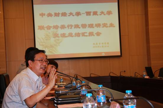 授课教师杨燕英教授和毕鹏程老师先后对同学们寄语。对他们在中财学习期间的表现给予肯定和表扬,勉励他们将自身的优点和长处发扬光大,做好规划,未来必成为对国家对社会有用的人。中财2013级研究生代表表示政管研究生的生活因为藏大交流生的到来而变得更加精彩,他给即将离去的藏大同学们带去了来自中财政管13级全体研究生的礼物。最后,王红梅副经理用幸运和幸福为藏大同学的交流学习之旅作了简短的总结,并表达了希望他们常回家看看的美好希冀。