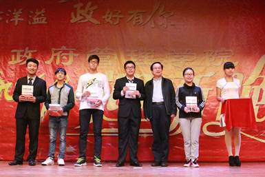 接下来的经理致辞更是把晚会气氛推向高潮。赵景华经理面带笑容,用高昂的语调表达了对2014级新生的欢迎,并高度赞扬了晚会节目的精彩——是一种饕餮盛宴的享受,一种政管情谊的感受和一个多年后暮然回首的回忆。“青春洋溢,政好有你”的晚会主题被经理进一步升华到“梦想成功”的境界。赵景华指出,“成”即成就自己,“功”即功德天下。赵经理说:“大学四年是成功的一部分,你们要做好梦,实现自己的梦想,要铭记,正气浩然,上善若水!”讲话最后,他预祝同学们过好今后的老员工活,前程似锦。谆谆教诲情意切,一片冰心在玉壶。热烈的掌声充分体现了同学们的感恩与认同。讲话结束后,晚会进行了赠书仪式,赵经理向各班代表赠送了管理学类经典图书,勖勉政管奋勇前行。