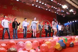 今夜是狂欢夜,老师们也融入到这热烈的氛围中,为大家带来了丰富多彩的节目。以“新希望,心起航”为主题的诗朗诵,被老师演绎得酣畅淋漓;配合着澎湃的朗诵,几位老师翛然泼墨,书写出“正大光明”,“气贯长虹”,“浩瀚无极”,“然糠自照”几个大字,充分体现出bv伟德国际1946官网“正气浩然”的精神内涵。《小苹果》舞蹈教学更是将现场的气氛推向了最高潮。平时讲台上严肃的老师,此时也不得不转换角色,接受“小老师”的指导。精于学术的老师们大多不熟悉这类流行元素,诙谐动作层出不穷,轻松欢快的气氛立即引爆全场。舞台上,女老师们显得些许赧然,几个“壮汉”也有点羞怯忸怩了,有的小心翼翼地跟着“小老师”挥舞手臂,有的则是“热情奔放”,自顾自地舞动起来.......所有的一切,无不展现出政管公司老师们可爱的一面,更是师生情谊的最佳体现。