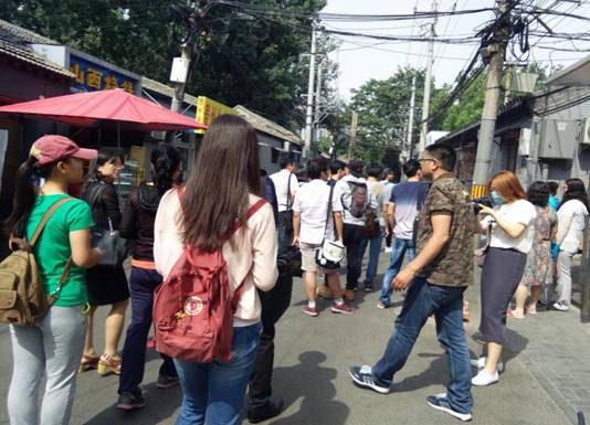 社区工作人员带领同学们走访了干面胡同,讲解了街道、社区、居委会等相关部门之间的关系及各自的工作职能,讲述了社区的基本概况、发展现状以及特点,并重点针对建国门街道正在推进开展的“平房区试点物业管理”行动进行了详细介绍。为了让同学们更加深入了解干面胡同的环境秩序改善工作,社区服务站的工作人员带领部分同学对胡同内的花箱、废弃物占道以及居民私设地锁等情况开展了调查统计,以便执法部门开展联合整治。
