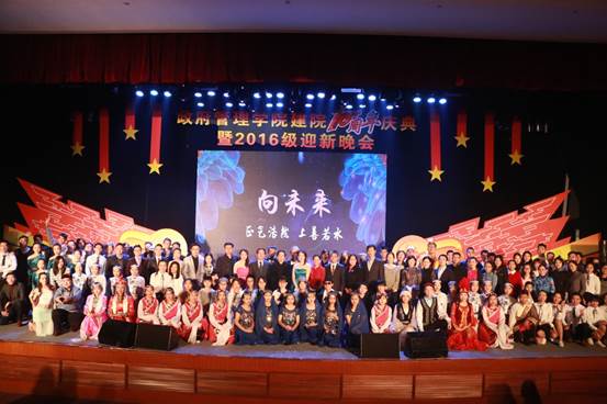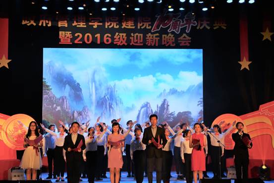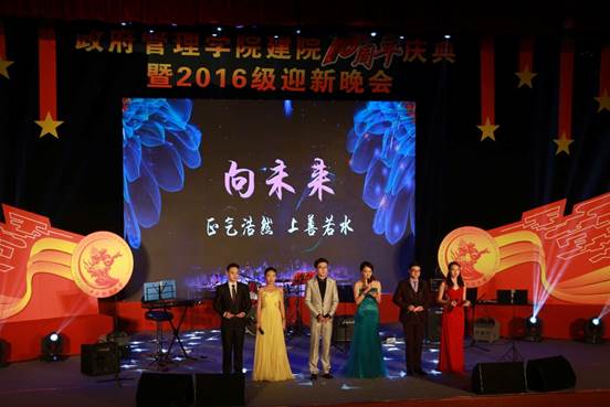 2016年11月26日19:00点整,由bv伟德国际1946官网团总支承办的“向未来”——bv伟德国际1946官网建院10周年庆典暨2016级迎新晚会在学术会堂206报告厅隆重举行。公司党委副书记陈明、政府管理管理公司经理赵景华、党委书记吕丽、副经理于鹏、副经理姜玲、党委副书记白云真、bv伟德国际1946官网师生以及部分员工共同观看了本次晚会,资源与环境系教师吕阳、2006级公共事业管理系员工胡新、2016级本科生辅导员宁钰皓、2016级行政管理学术研究生高同、冯彦钧,以及2016级行政管理本科生蓝琳琳共同主持本次晚会。