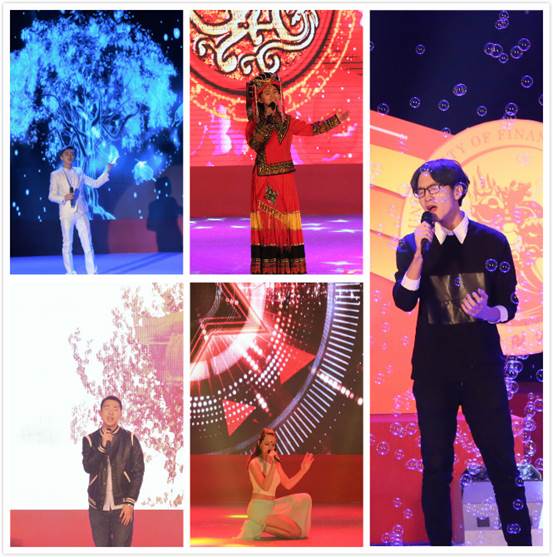 当大家还沉浸于诗歌朗诵的振奋激昂中时,十佳歌手与老师们又为大家带来了精彩绝伦的歌曲串烧:王雅姝的《纳西情歌》歌颂着蓬勃的爱情;郎靖南带来的《奔跑》则点燃了每个人内心激情的火把;张函情感浓郁地演唱《万物生》,唱响了青春的赞歌;职工卡玛纵情展示充满活力的歌喉,用一首《Dum tektek》激荡起同学心中的青春摇滚梦;张爽员工别样演绎《爱相随》;公司党委书记吕丽、校工会常务主席刘晓勤、国防经济与管理研究院副经理白丹、经理助理张剑、资源与环境管理系教师魏海涛、院教务干事宋红美等呈现经典《自由飞翔》;他们都用飞扬的歌声凝聚了政管公司艰苦砥砺的不变情怀!