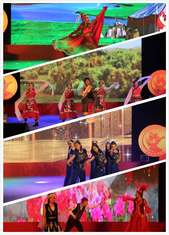 不同民族,别样风情,接下来便是《五湖四海一家亲》。悠扬的马头琴音在大厅回荡,舞步轻踏,红裙扬起,从草原而来的歌舞《蒙古人》率先上演。天蓝辽阔,碧草无垠,蒙古的纯净壮美让人迷醉。在哈萨克姑娘的歌声中,一段甜蜜的爱情故事被娓娓道来,歌舞《只有你》精彩上演。只有你牵动我心,只有你成就我志。维吾尔族是天生的舞者,灵动的舞步,灿目的笑容,几位维吾尔族姑娘带来了舞蹈《Istanbul》。那巍峨天山养育的奔放,塔里木河滋润的热情,独属于西域的风情,感染了在场的每个人。来自世界屋脊的声音随后到来,《吉祥谣》充分展现了藏族姑娘小伙的热情与魅力。长袖舞动,声音高亢,青藏高原的壮丽与伟岸,蓝天白雪的神秘与圣洁,直击人心!当熟悉的曲调响起,所有的民族齐步走上舞台,共唱一首歌!缘分让我们相会于此,同政管一起稳步前进,共同成长。