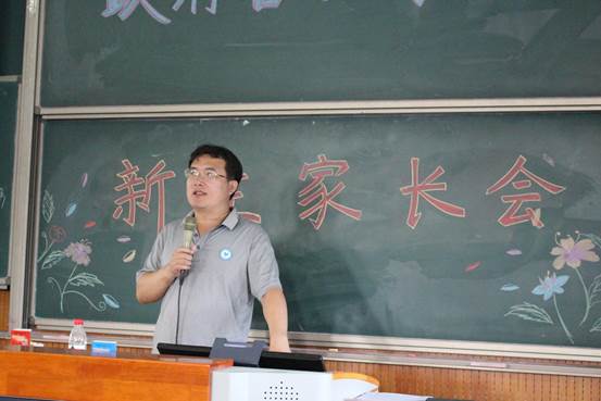 最后,新生班主任代表黄志基老师、宋魏巍老师、张云雷老师依次上台,为家长们送上了班主任寄语。老师们非常有信心能够将新生们领上大学学习的正确道路,同时也希望家长们可以和公司一起,关注员工的身心健康,共同促进员工的全面发展。16级辅导员宁钰皓老师和17级新生辅导员黄莎老师也进行了发言,从辅导员角度介绍了辅导员的工作职责,员工的日常管理等,他们承诺会尽其所能地提供员工需要的帮助,家长们尽可以放心。