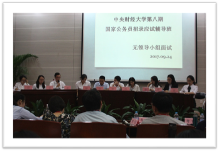 “无领导小组讨论”之后,面试礼仪技巧讲座随即开始。中公教育李冰冰老师以自身经验结合当前公务员国考面试,从职业能力和职业思维两个方面展开,包括面试时应有的形象、语言交流、计划组织、角色定位等。李老师语言生动,讲解到位,言简意赅,赢得了在场同学的阵阵掌声。此外,李老师现场还积极地回答了现场同学们提出的问题,解答了同学们各式各样的面试难题。至此本次国家公务员招录应试辅导班模拟面试辅导全部结束,取得圆满成功。