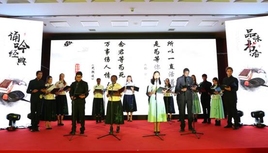 来自10个公司由120余名同学组成的7支代表队不负众望,在中华经典诗词诵读吟唱比赛的大舞台上带来了一场视听盛宴。