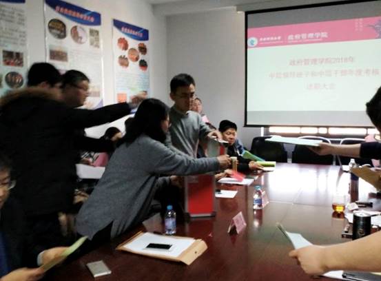 述职完毕后,公司办公室尹玉副主任、许雄刚老师主持民主测评会议,公司教职工、员工代表填写民主测评表。