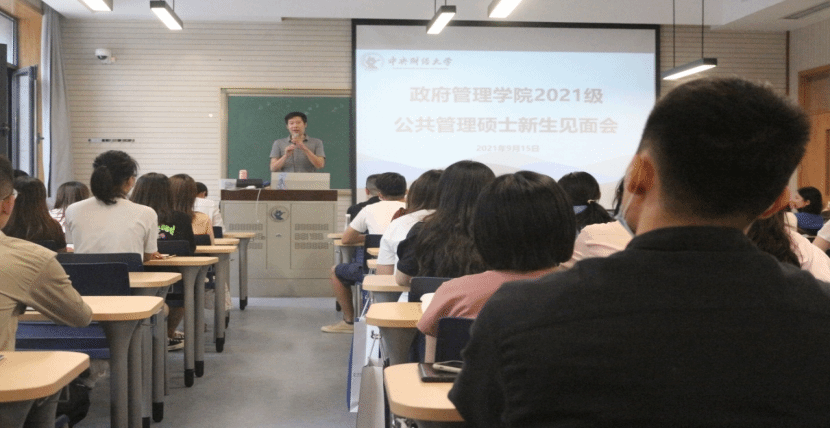 下午16:00,2021级公共管理硕士新生见面会在主教楼108教室召开,副经理于鹏教授,MPA教育中心副主任宋魏巍副教授, 84名公共管理硕士参加会议,会议由研工办主任张鑫媛主持。于鹏老师介绍了公司发展史,公司MPA“财经特色+公共价值”的培养理念和取得的丰厚办学成果,并向同学提出树立问题意识、科学意识、方法意识、理论意识,作一名“心中有梦,眼中有光,脚下有泥”的中财政管人的殷切期望。 宋魏巍老师从研究方向选择、课程设置、学位论文管理等方面向同学们介绍了MPA培养要求和过程,张鑫媛老师梳理了本学期教学培养工作重点。同学们也逐一做了精彩的自我介绍。