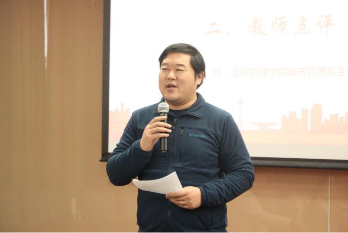 公司发言后城市管理系主任王伟老师对同学们的分享进行点评,王伟老师以“因材施教,传道授业,由表及里,润心无声,多堂联动,触动灵魂”介绍了城市管理专业人才培养的目标和导向。他勉励同学们注意在生活中关注城市变化、关注人民需求,同时强调“实践出真知”,鼓励同学们在课程实践中感悟城市发展脉络,开拓国际视野,提升专业本领,依托城市创造公共价值。