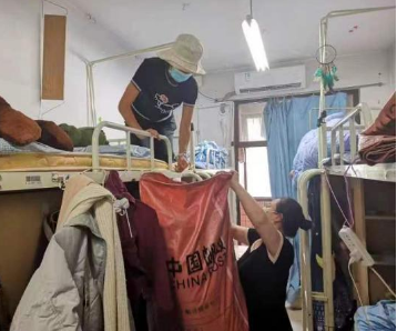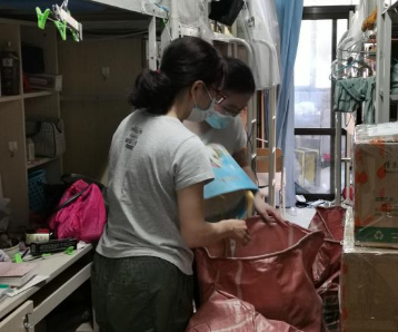 在校毕业生协助整理打包行李