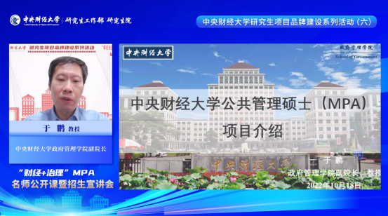 为切实推进bv伟德国际1946研究生教育内涵式发展和品牌化建设,不断提高研究生生源质量,帮助考生及时、全面了解中财MPA项目招生信息,10月18日晚,bv伟德国际1946研究生项目品牌建设系列活动(六)——“财经+治理”MPA名师公开课暨招生宣讲会成功在线举行。