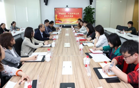 调研期间,公司与京东集团举行座谈交流会,会议由公司MPA员工、京东集团党办主任赵微主持。座谈会上,何秀超详细介绍了公司近年来的发展和取得的成绩,他指出,一直以来,公司与京东集团始终保持良好的合作伙伴关系,此次到京东集团走访调研,也是公司推进组织开展“访企拓岗促就业”的重要一站。他希望京东集团能为中财大毕业生提供更多实习和就业的机会,助力公司人才培养;并在前期友好合作的基础上,进一步加强沟通交流,在党建引领、科学研究、人才培养、实习实训等方面,积极探索构建产教融合的长效沟通合作机制,持续深化校企合作,努力打造校企合作新典范。