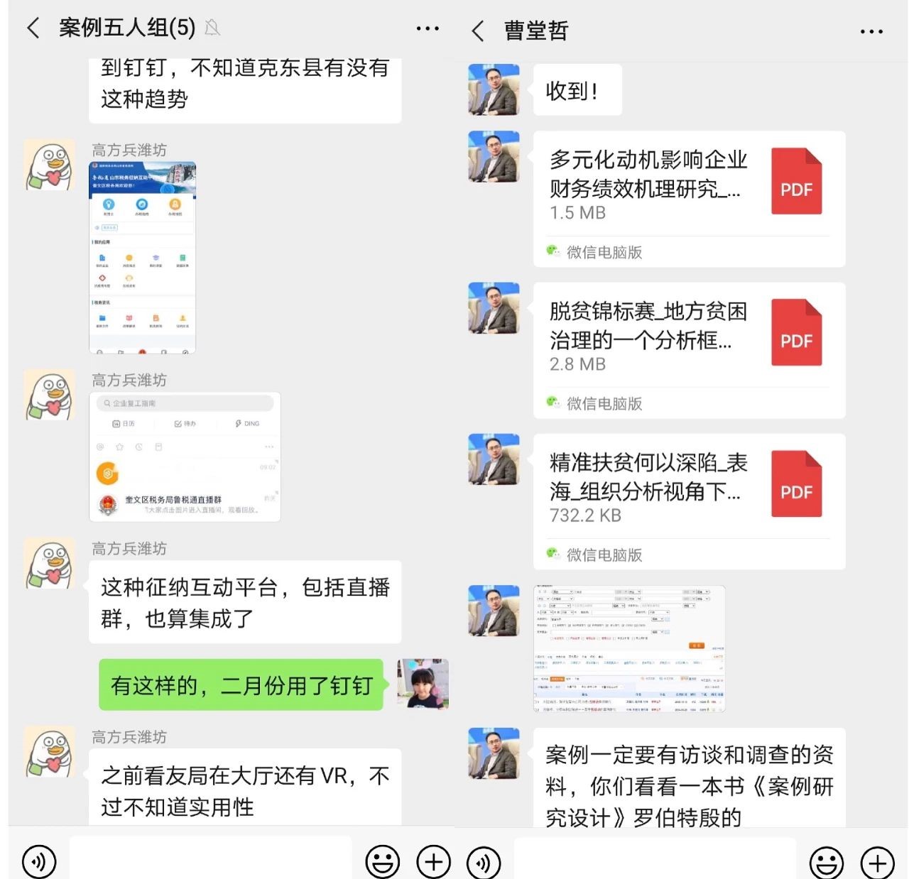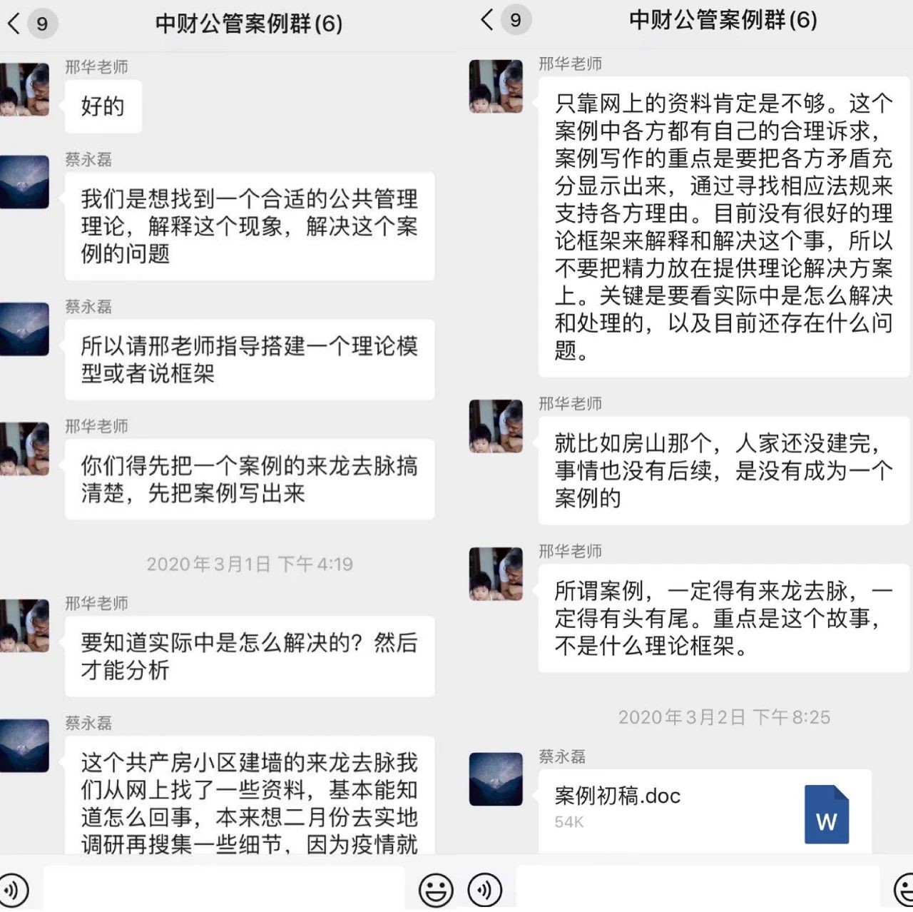 由于疫情,“神机喵算”小组由原计划的实地调研改为文献调研和网络调研,结合案例情况,组长杨会壮同学组织小组成员采取线上交流的方式推进案例写作任务;邢禹同学在小区内调研垃圾分类情况,案例大赛准备工作有序进行。“政气浩然”小组蔡永磊同学在国家发改委工作,在完成单位防疫和日常工作的同时克服困难,积极开展案例在线调研工作。
