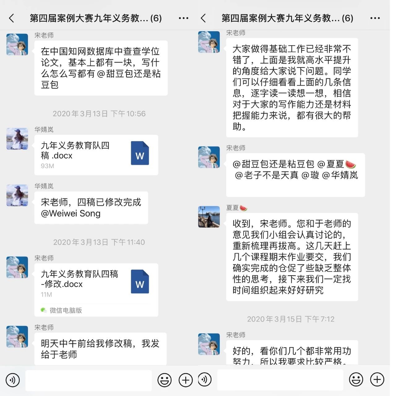 “停课停教不停学”。伴随着新学期的到来,疫情尚未彻底结束。一时的困难并未影响大家的科研热情,各小组的案例文本修改工作正如火如荼地进行。学术研究的道路从来不是一马平川,过程中有困惑,有迷茫,也有争论。在写作过程中,成员分工协作、集思广益,老师耐心指导、详细批注。成员一次次地线上讨论,老师一次次地深夜批改,小组一次次地改进完善都是为了成就更完美的作品。