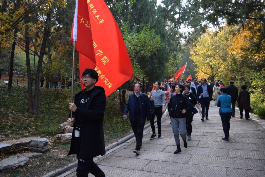离开双清别墅后,全体党员共同参观中共中央“四大书记”的住地来青轩,并于中央警卫团住地的院子里集合,在本科生党支部书记李莎莉老师的主持下,开展诗歌朗诵、重温入党誓词和歌唱祖国三项活动。