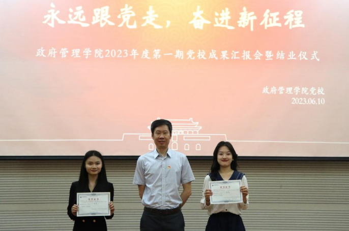综合党校整体学习过程、现场展示以及提交的学习报告,本次党校学习成果汇报会中,“红星照万代”小组、“筑梦助农”小组荣获一等奖,“求实学习”小组、“守望初心”小组、“奋楫争先”小组荣获二等奖,“新青年”小组、“风华政茂”小组、“履践致远”小组、“青春逐梦”小组、“青春五四”小组荣获三等奖。