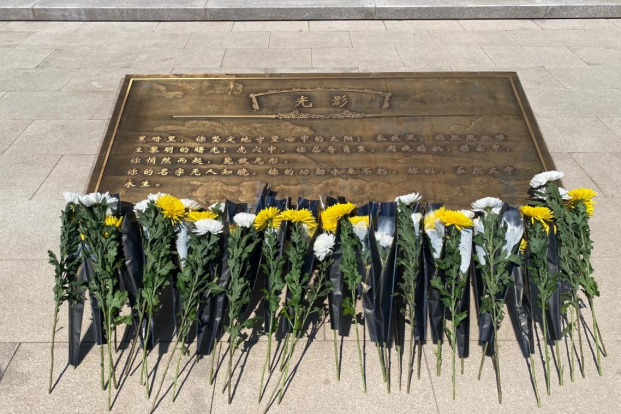 党员同志向烈士们敬献花束,鞠躬默哀