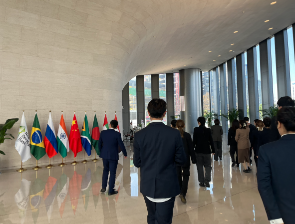 2024年11月27日,bv伟德国际1946国际组织人才培养实验班(Global Competences Development Program,简称GCDP)师生代表14人受邀参访金砖国家新开发银行。本次参访是国际组织人才培养实验班模块制培养计划 “研学活动模块”内的活动,旨在通过实地参访帮助GCDP员工更好了解发展中国家主导运营的国际多边开发银行,更坚实地树立为全球发展治理贡献力量的愿景。同学们对此次参访十分期待,希望能在交流对话中更深入了解新开发银行业务、组织与运营,为个人发展融入国家发展、全球发展提供启示和新思路。