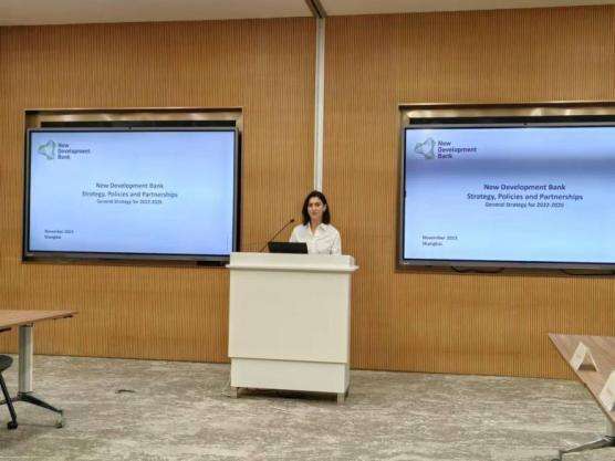 参访新开发银行(NDB)让我对非盈利性开发银行有了更清晰和深入的了解。他们的运作模式与我之前在咨询公司实习接触到的商业银行相比,有着非常明显的差异。NDB更注重可持续发展和社会效益,不仅支持政府主权项目,还特别强调非主权融资。与此同时,NDB的战略性目标由各个部门共同推动,所有决策都紧密围绕可持续发展进行调整。这次参访让我更加理解了相比商业银行追求财务利润,NDB通过跨部门的协作,平衡金融回报与社会影响,推动全球可持续发展。NDB在实现长远社会目标方面独特的运作模式,进一步激发了我对新开发银行等国际组织的浓厚兴趣。