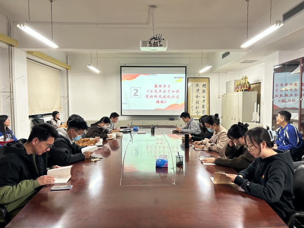 随后,支部成员集体学习《习近平关于加强党的作风建设论述编摘》。支部成员在朱家和的带领下,通过阅读《习近平关于加强党的作风建设论述编摘》,展开集体学习。朱家和书记带领支部成员研读《论述摘编》核心篇章,重点围绕“中央八项规定精神”“作风建设常态化”等主题展开讨论。朱家和指出,我们不仅要在理论学习中深化对中央八项规定精神的理解,更要在科研实践中践行严实作风。在开展社会调研时,要避免走马观花式的形式主义,真正深入基层、贴近群众,让学术成果经得起实践检验。同时,朱家和强调了作风建设常态化的重要性。他指出,作风建设只有进行时,没有完成时,必须常抓不懈、久久为功。他鼓励支部成员在日常学习和生活中,要以更高的标准要求自己,做到廉洁自律、艰苦奋斗,以实际行动践行党的优良作风。