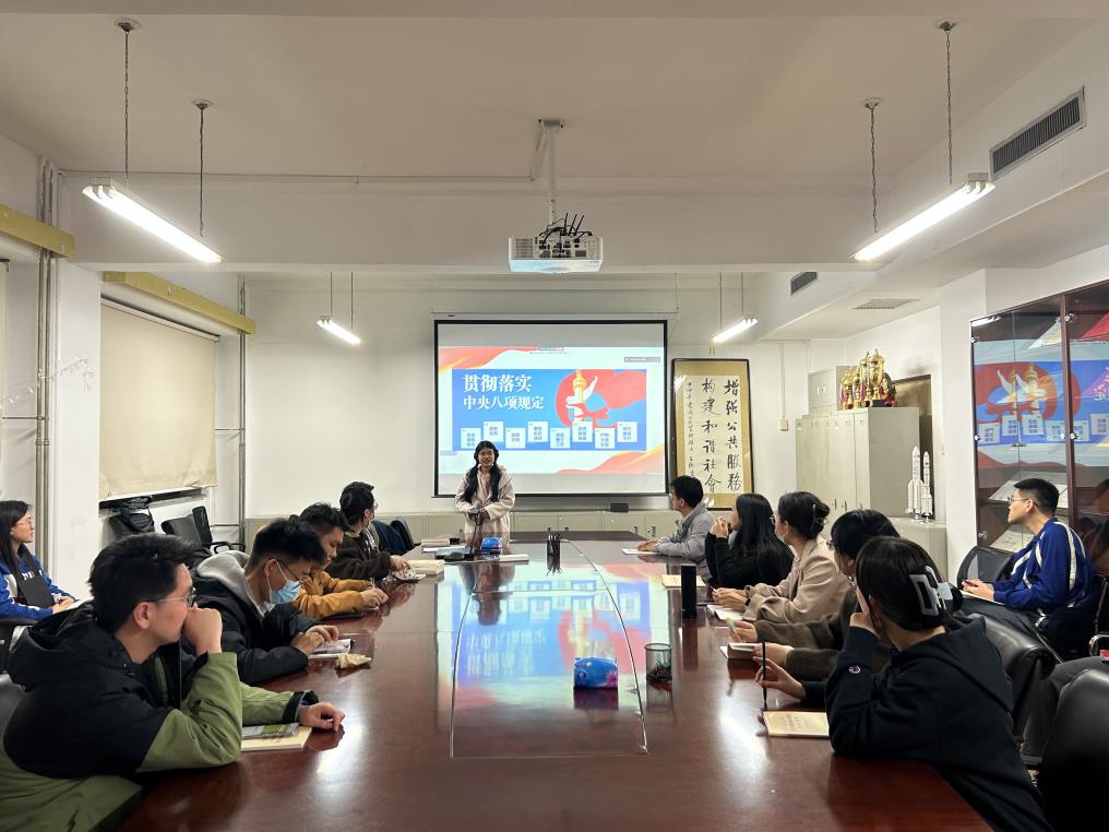 接着,校研究生宣讲团讲师卢海燕进行学习中央八项规定精神领学分享。她从改进调查研究、精简会议活动等多方面入手,认真解读了中央八项规定内容和要求。她表示,认真贯彻落实中央八项规定精神对支部建设有着重要的指导意义,该规定督促我们在日常学习和工作中,减少形式主义,把精力切实投入到提升学习质量、提高支部建设质量等实际事务中。她号召大家要以中央八项规定为准则,时刻反思自身行为,将规定精神贯彻到每一次的学习任务和实践活动中。